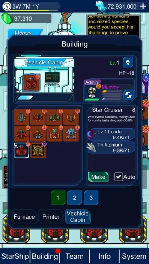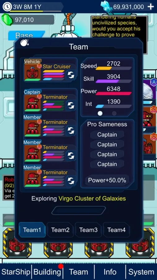 Your team can be arranged to explore space, collect resourses and defeat monsters.