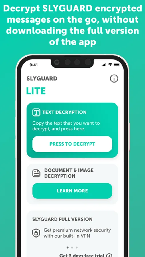 Decrypt SLYGUARD encrypted messages on the go without the need to create an account.