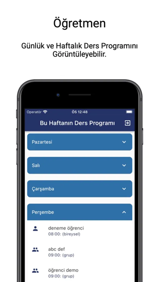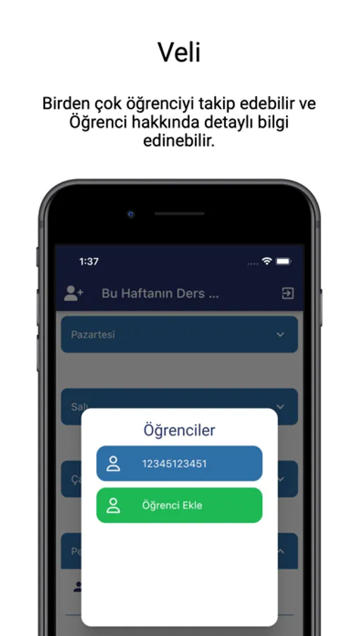 - Mobil uygulama üzerinden günlük ders programlarını görebilir.