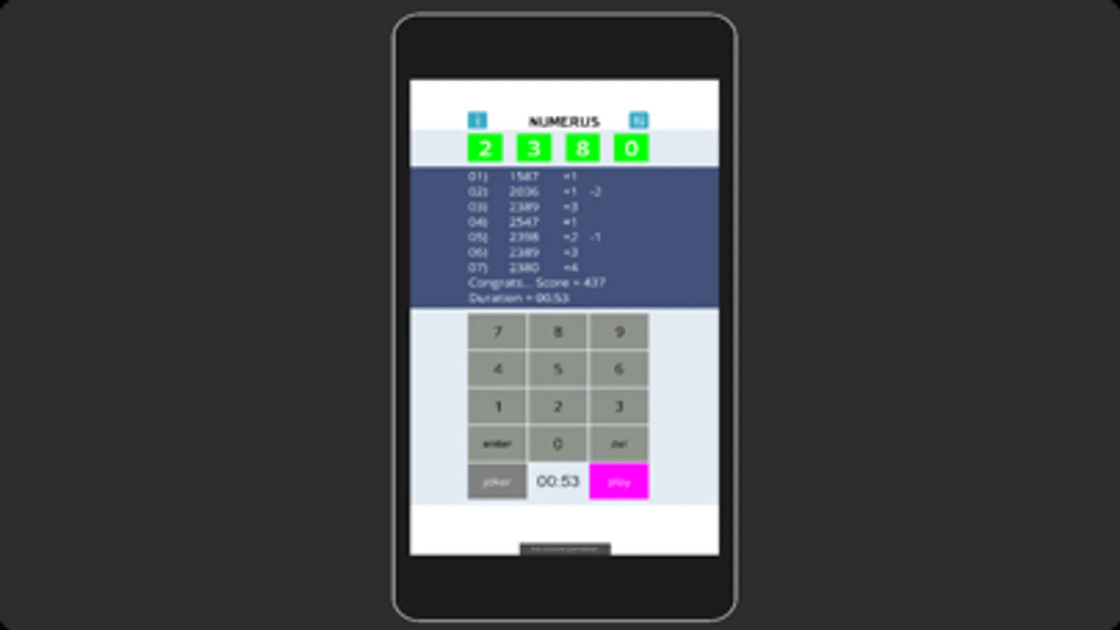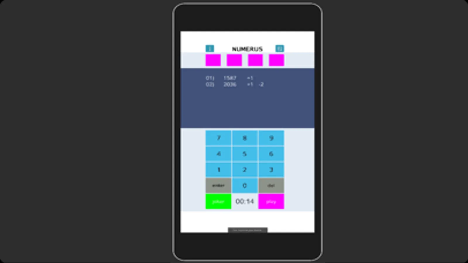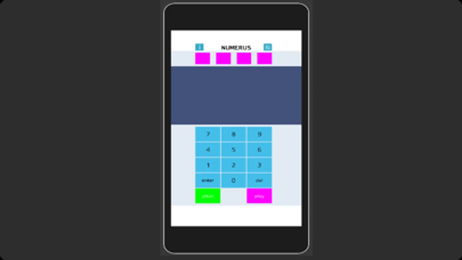 The game starts when the "play" button is pressed. In this way, a 4-digit hidden number is randomly determined by Numerus oiko and the player is expected to find this number. Each digit of the hidden number is unique, for example 3670, 0842, etc.