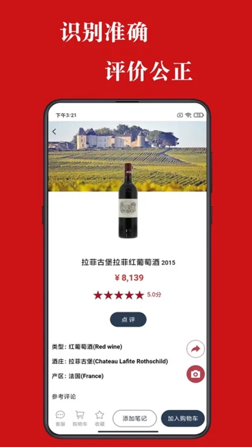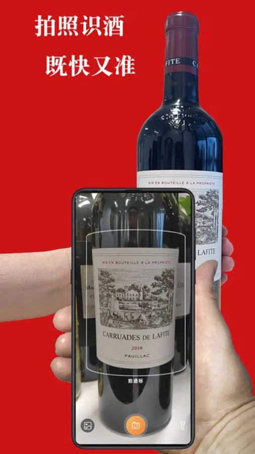 拍照识酒,随时随地拍照上传酒标照片,可以马上给出商品名称、基本信息、评论、价格等等