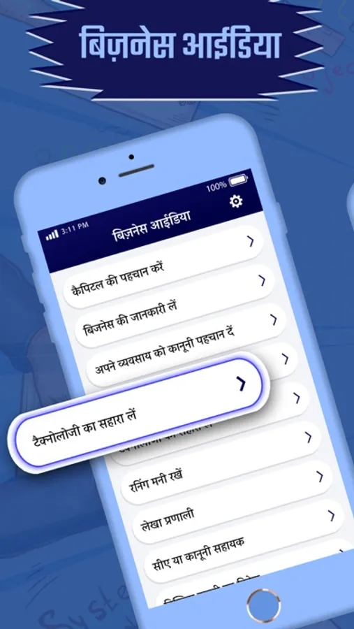 यह ऐप आपको हिंदी में शीर्ष व्यावसायिक विचारों का संग्रह प्रदान करता है। यह ऐप आपको कम निवेश वाले बिजनेस आइडिया और स्टार्टअप बिजनेस प्लान के बारे में हिंदी में जानने में मदद करता है। यह एक ऑनलाइन/ऑफ़लाइन ऐप है जिसमें एक अलग प्रकार के व्यावसायिक विचार शामिल हैं जैसे छोटे शहर के व्यवसाय घर-आधारित व्यवसाय और महिलाओं के लिए व्यावसायिक विचार और एक ही स्थान पर कई व्यावसायिक योजनाएं।