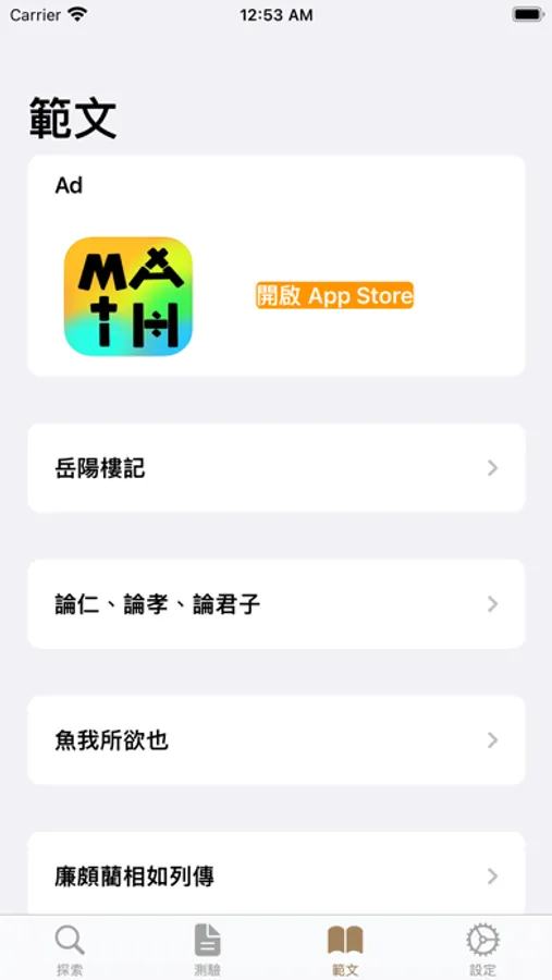 包含12篇範文的文本,語譯,賞析及測驗