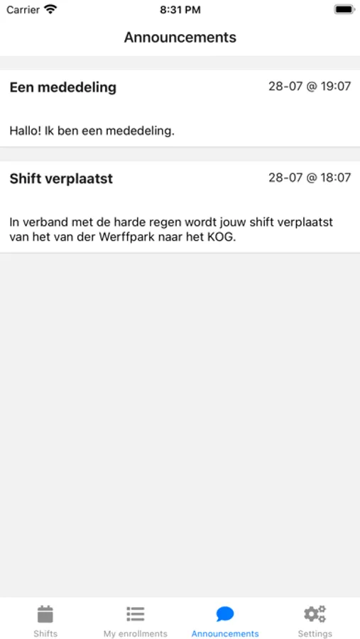 When your shift starts you will receive a reminder. You will also be kept informed of important updates regarding your shifts.