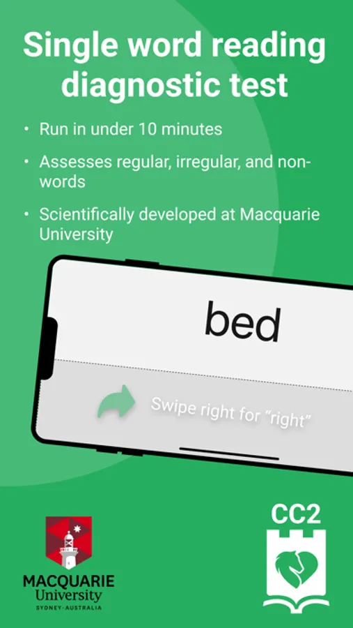 This app has been developed from the CC2 literacy assessment tool created by Macquarie University Centre for Reading.