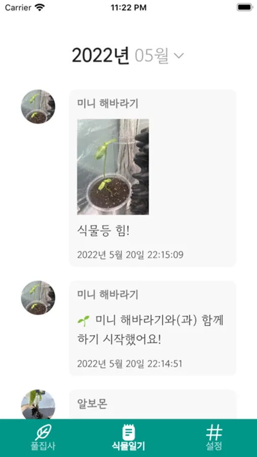 * [일기장] 식물별로 사진과 함께 짧은 기록을 남길 수 있어요. 나중에 사진들을 모아볼 수 있도록 도와드릴게요.