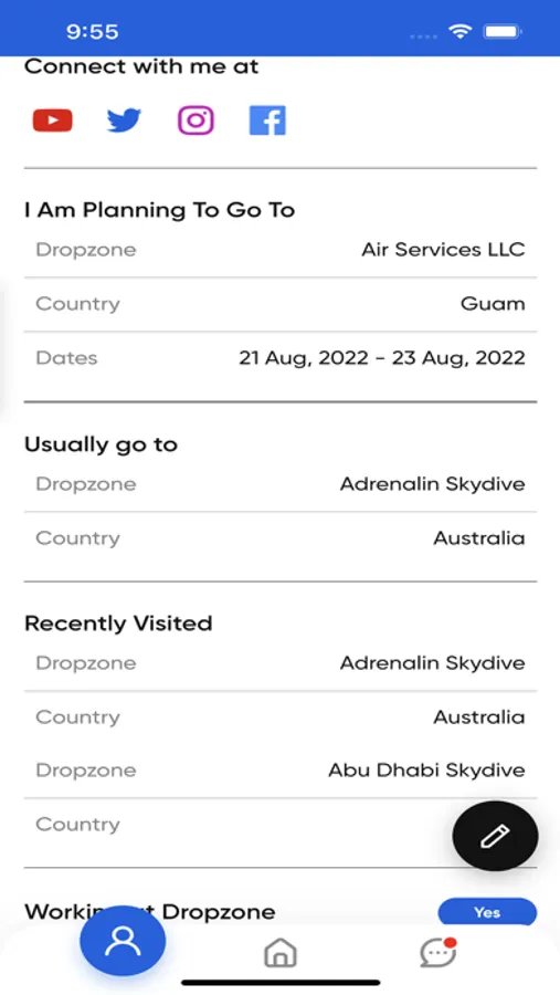 Create posts and notifications to skydivers all around the world.