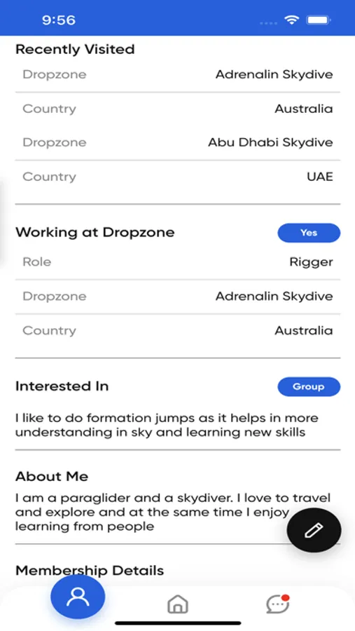 Show your skydiving profile and your achievements.