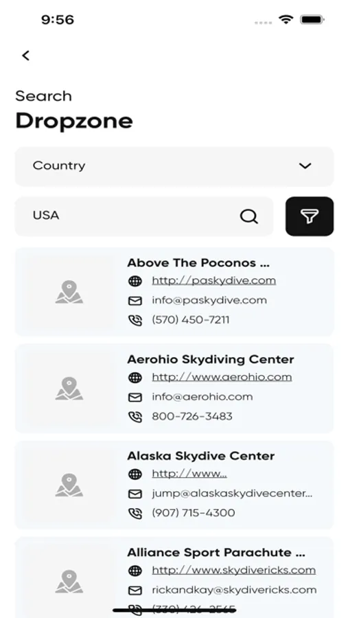 Search a dropzone: List all USPA, BPA, APA, NZPF and more dropzones, dropzone nearest to you, and find the contact information of dropzones at one place.