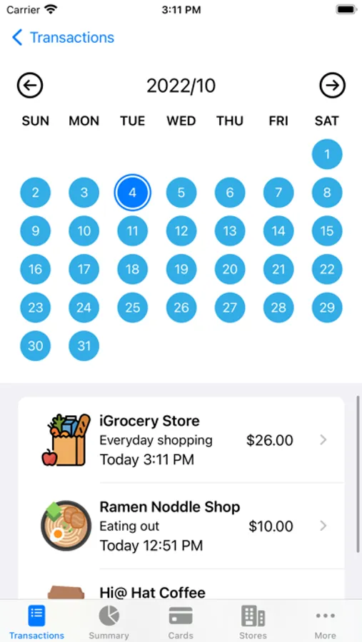 - View spending in a calendar view by days