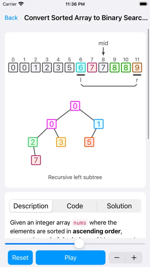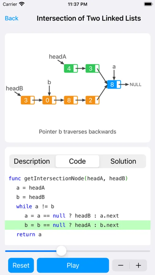 - In the process of learning algorithms by myself, I often understand the ideas, but I can't understand the codes, and many codes in the text explanations have no comments. Seeing this is a big headache. Therefore, when thinking about App interaction, the code highlighting function is specially designed, which means that each line of code will be highlighted as the animation progresses. In this way, the animation is executing, the code is highlighted, and it looks cool.