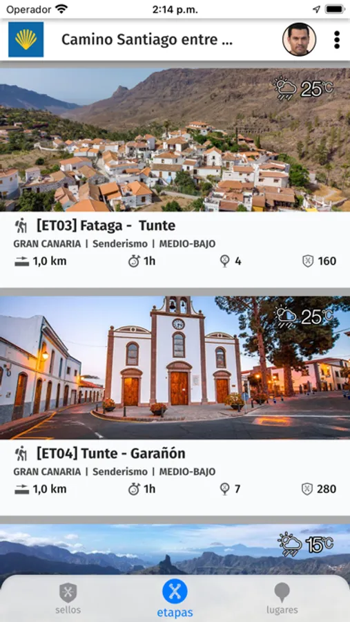 App rutas Camino de Santiago entre volcanes, con etapas por todas las Islas Canarias. Rutas con puntos de interés acompañados por audioguías, fotos, vídeos, mapa de rutas. Las localizaciones de las rutas se detectan por georeferencia o balizas que usan bluetooth. Cada ruta permite coleccionar sellos, acumular puntos y sumar kilómetros, proporcionando servicios para disfrutar del entorno: alojamiento, restauración, guías profesionales.