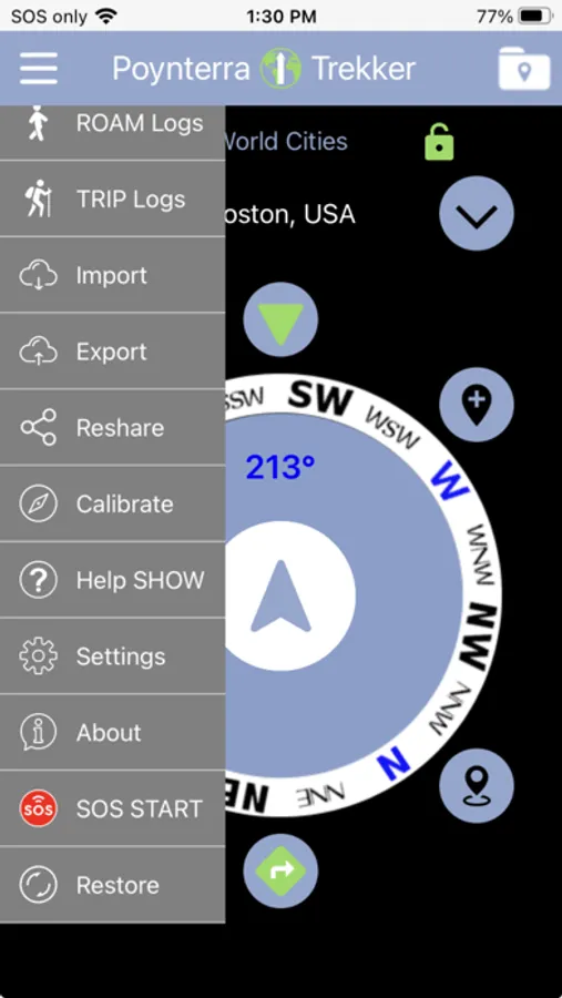 Poynterra Trekker is a unique, versatile navigation app that literally points you to any location on earth (a waypoint) without using the internet. If you’re an off-the-beaten-track trekker who would welcome a GPS lifeline in remote areas, this app is for you. Laying down GPS tracks is easy in ROAM and TRIP modes, ensuring easy return to previous waypoints. And as an ultimate lifeline, we’ve added SOS Emergency Flasher. If you’re a less adventurous traveler (like on a peaceful cruise), you’ll find it equally valuable in tracking distance and direction to foreign ports on the open seas and for sightseeing on land. If you’re on a biking trip, you’ll love AudioPoynt™, which points you to your destination though your phone speaker or earbuds even when your phone is off. All of this, and much more, functions without wifi or a cell connection!