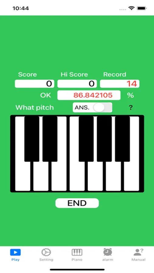 繰り返し聞き、音の確認をする事が出来ます。答えを表示中は、点数や正解率は変化しません。