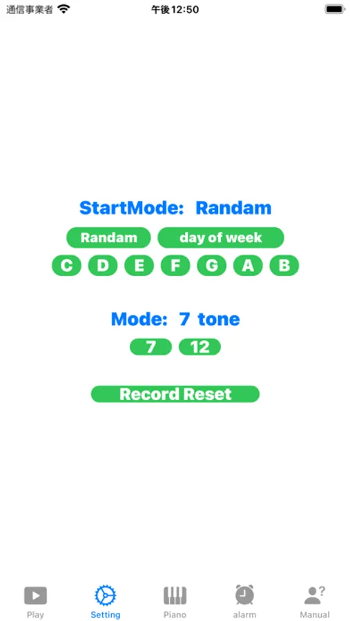・Setting画面で、7音(白鍵のみ)モードと12音モードの選択ができます。
