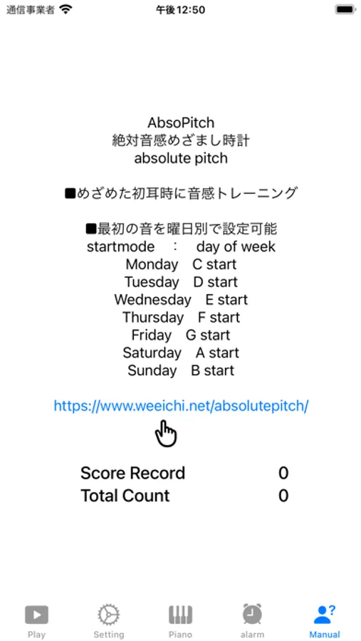・Manual画面に、説明サイトへのリンクと、最高記録、トータルカウント表示があります。
