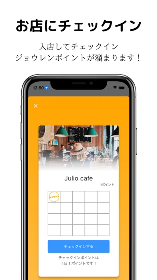入店時にアプリでチェックインすることで、来店スタンプが溜まります!