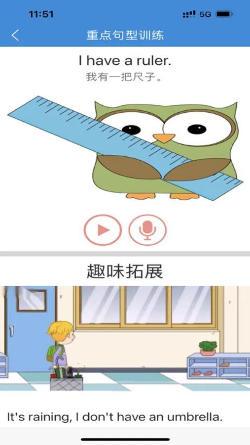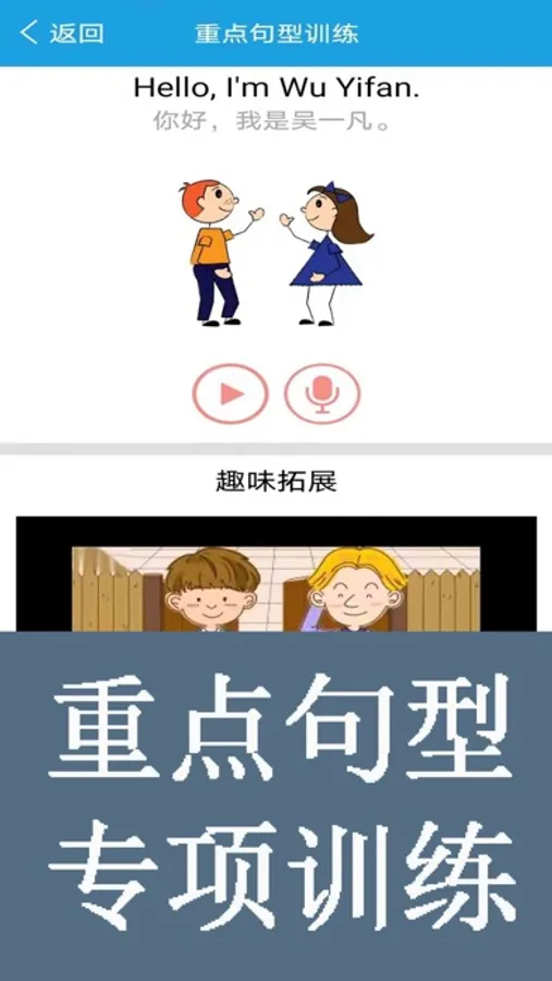 6、 同步句型视频专项训练,让课堂上学的每一个句型都有机会实战练习。