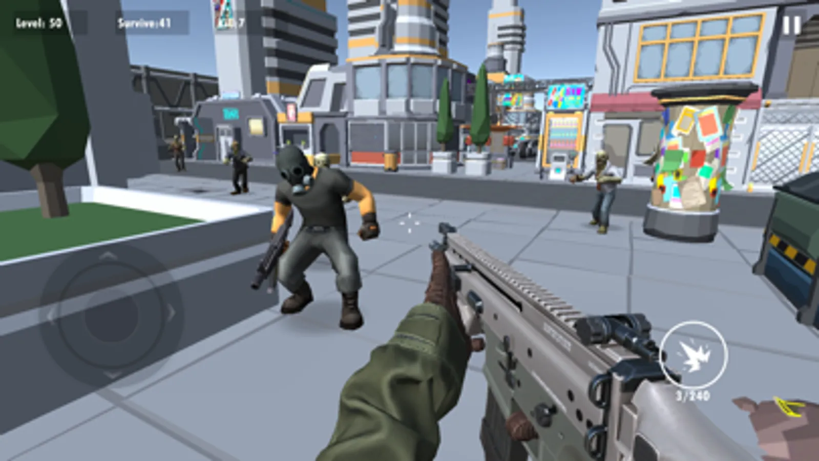 This time we will have a brutal fight against terrorists in the city, your goal is to survive, survive! At the same time, you must always guard against zombies, because they will attack you, they are all over the city, and you need to kill them one by one.