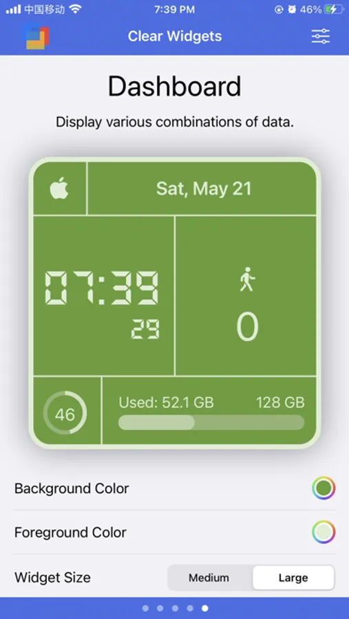Selected home widgets can provide clock display, today's steps, mobile phone battery, storage space, etc.