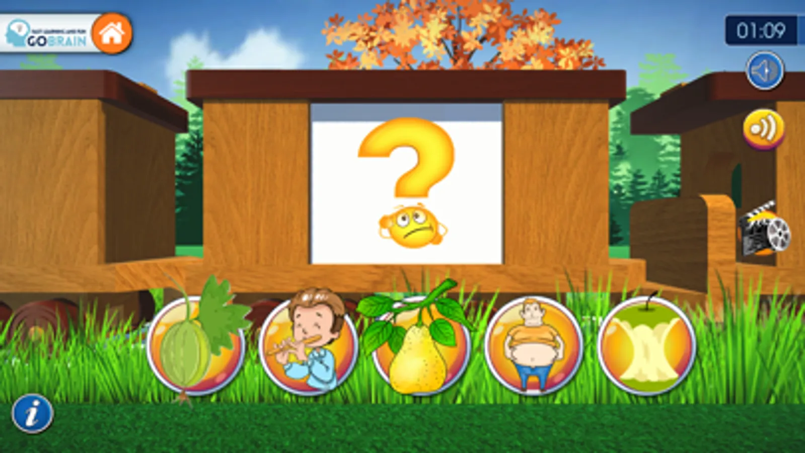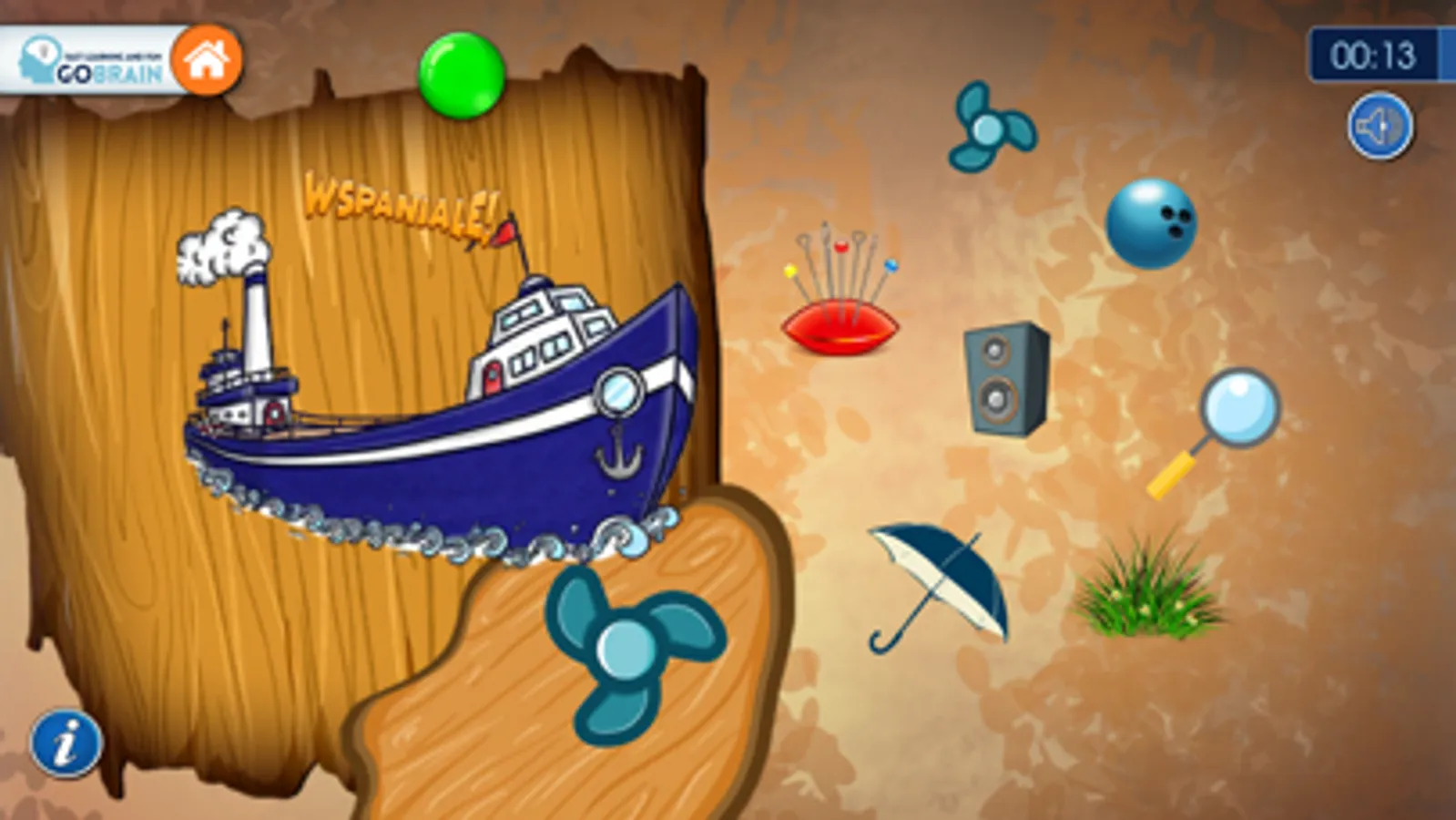 Należy dostosować poziom głośności do preferencji dziecka, w początkowej fazie ćwiczeń można dźwięki w tle wyciszyć przytrzymując ikonę z głośnikiem przez 1,5 sekundy. Funkcja ta automatycznie sama włączy się przy kolejnym zadaniu. Wyciszanie stosować w wyjątkowych przypadkach, ponieważ ta funkcja jest szczególnie wskazana u dzieci z nadwrażliwością słuchową, dzięki niej dziecko w miarę treningu uczy się ignorować dźwięki w tle a wrażliwość słuchowa normalizuje się.