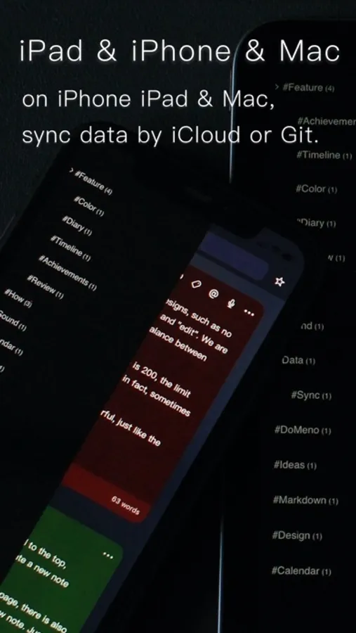Local, Full Text Search, History Versions, Voice Recording, Voice to Text, iCloud Drive sync, Git sync, Card Notes, Memory Curve, 200 Words, Tags, Backward Links...