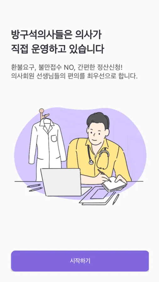 다른 전문직 서비스와 다르게, 의사회원님들의 편의를 위해 수익신고나 사업자신고 등의 번거로운 과정을 최소화하는 시스템을 구축하였습니다.