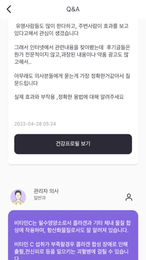 간단 질문 서비스: 간단한 의료지식 관련 게시판