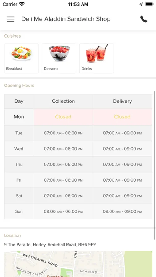Order food online from Deli Me Aladdin Sandwich Shop! It's so easy to use, fast and convenient. Try our new, online app which contains our entire takeaway menu. The Deli Me Aladdin Sandwich Shop is located in Redehall Road. You can now order online, all your favorite dishes and many more delicious options, and have them delivered straight to your door in no time at all.