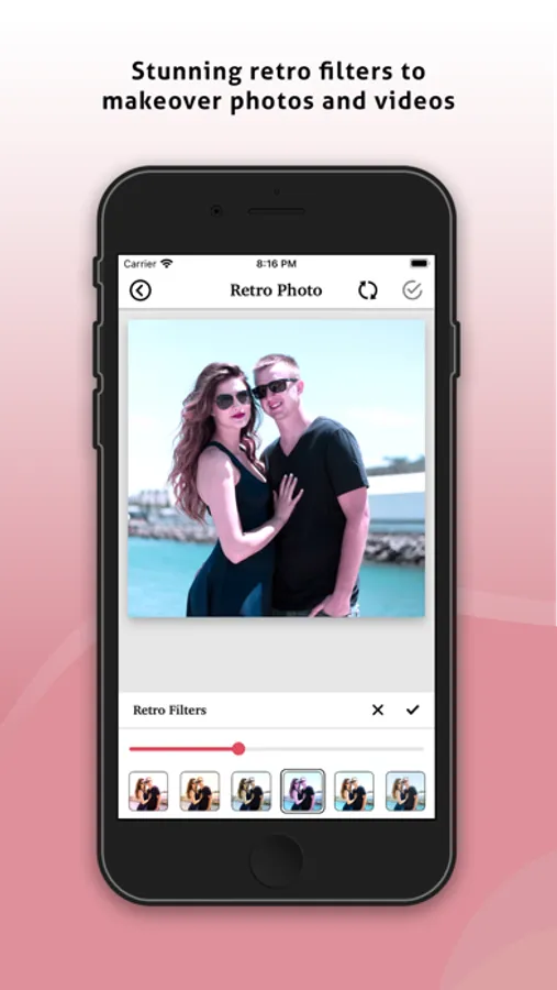 Convert your photos and videos into retro style and vintage style with FilterCam.