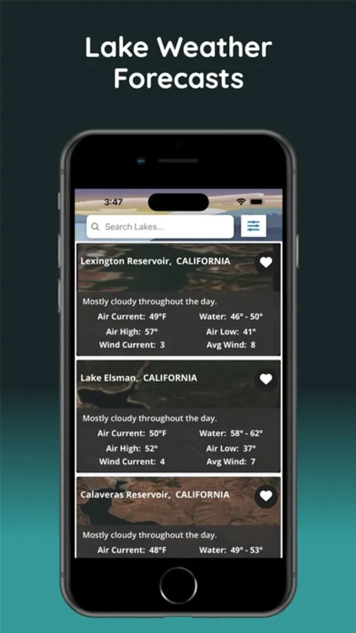Add your favorite lakes to your dashboard for faster and easier access to conditions on your favorite lakes, and receive push notifications when a new water temperature, natural color image, or post has been added.