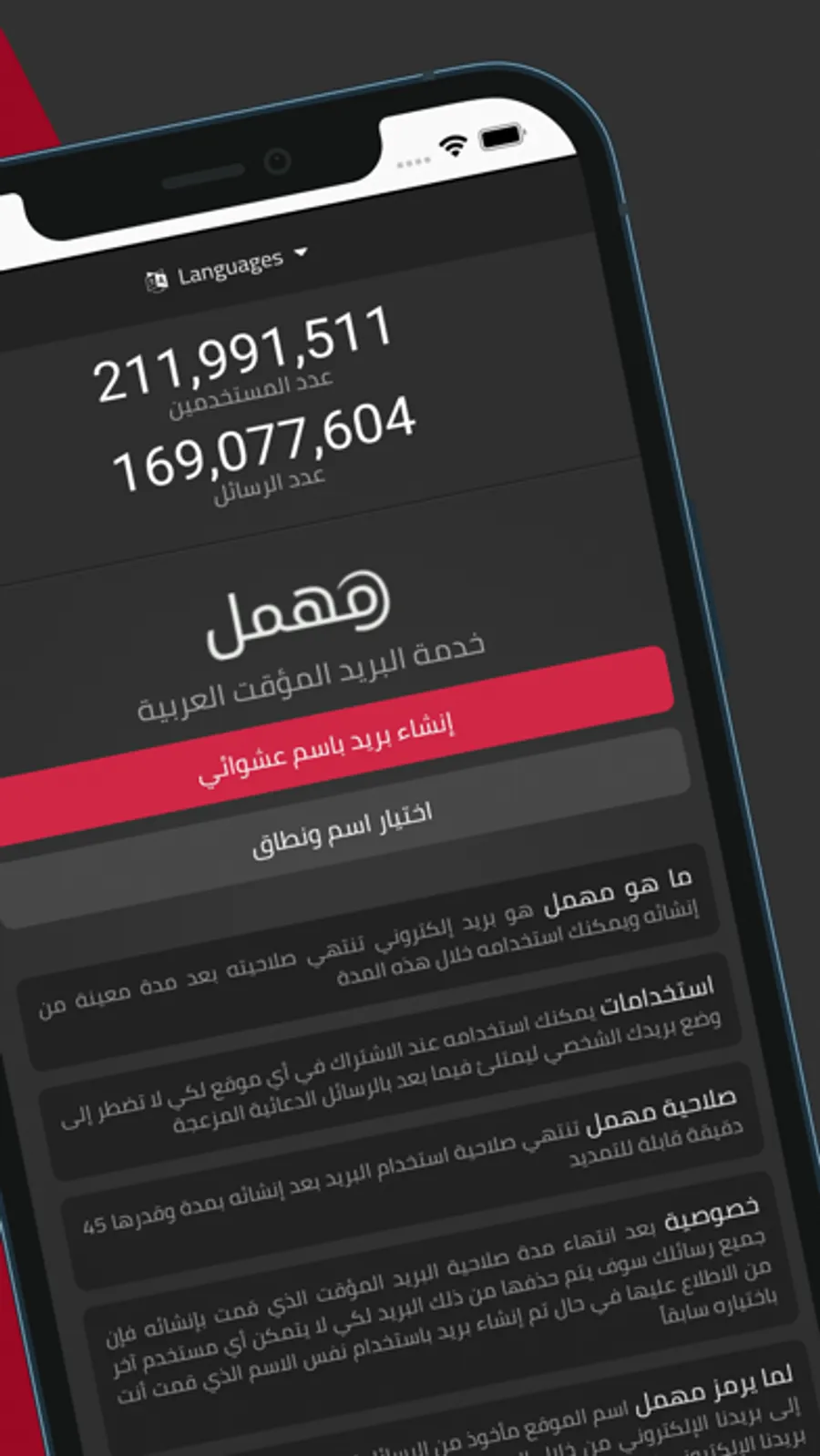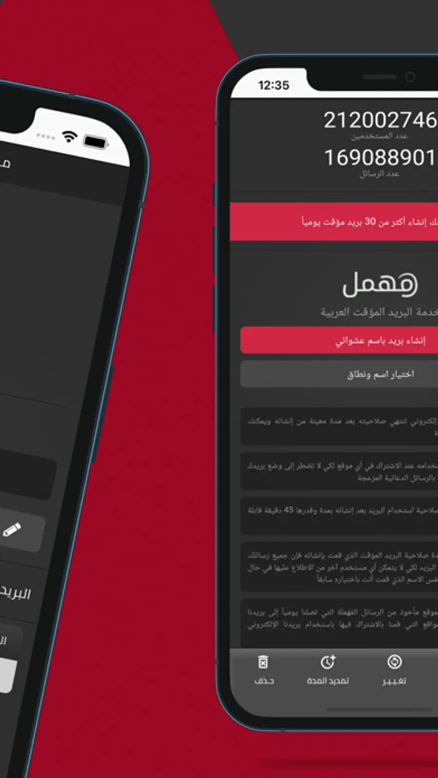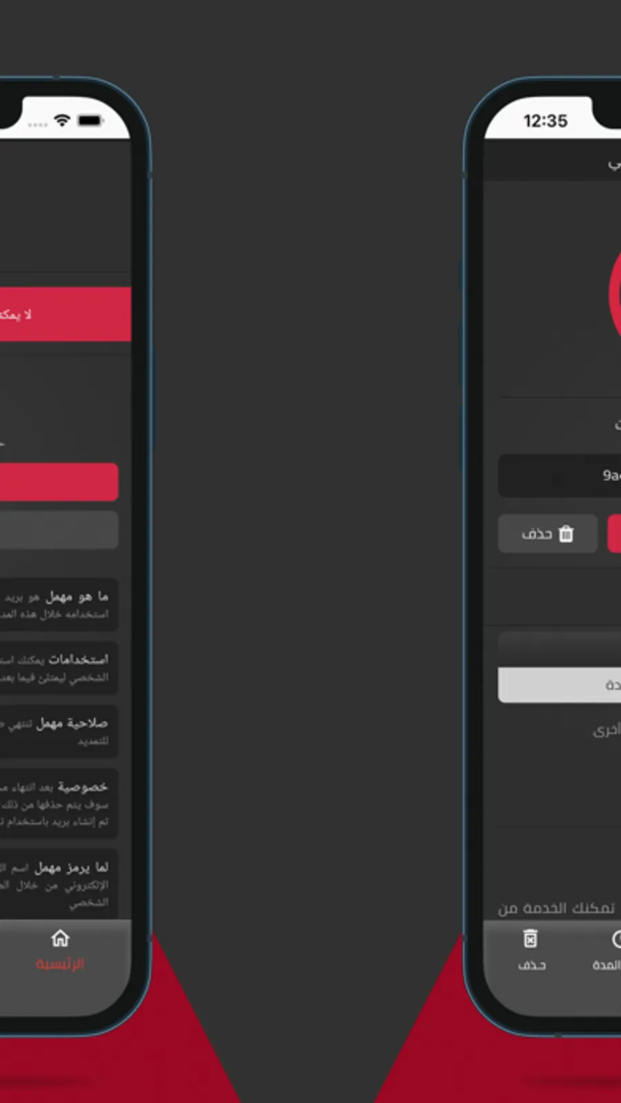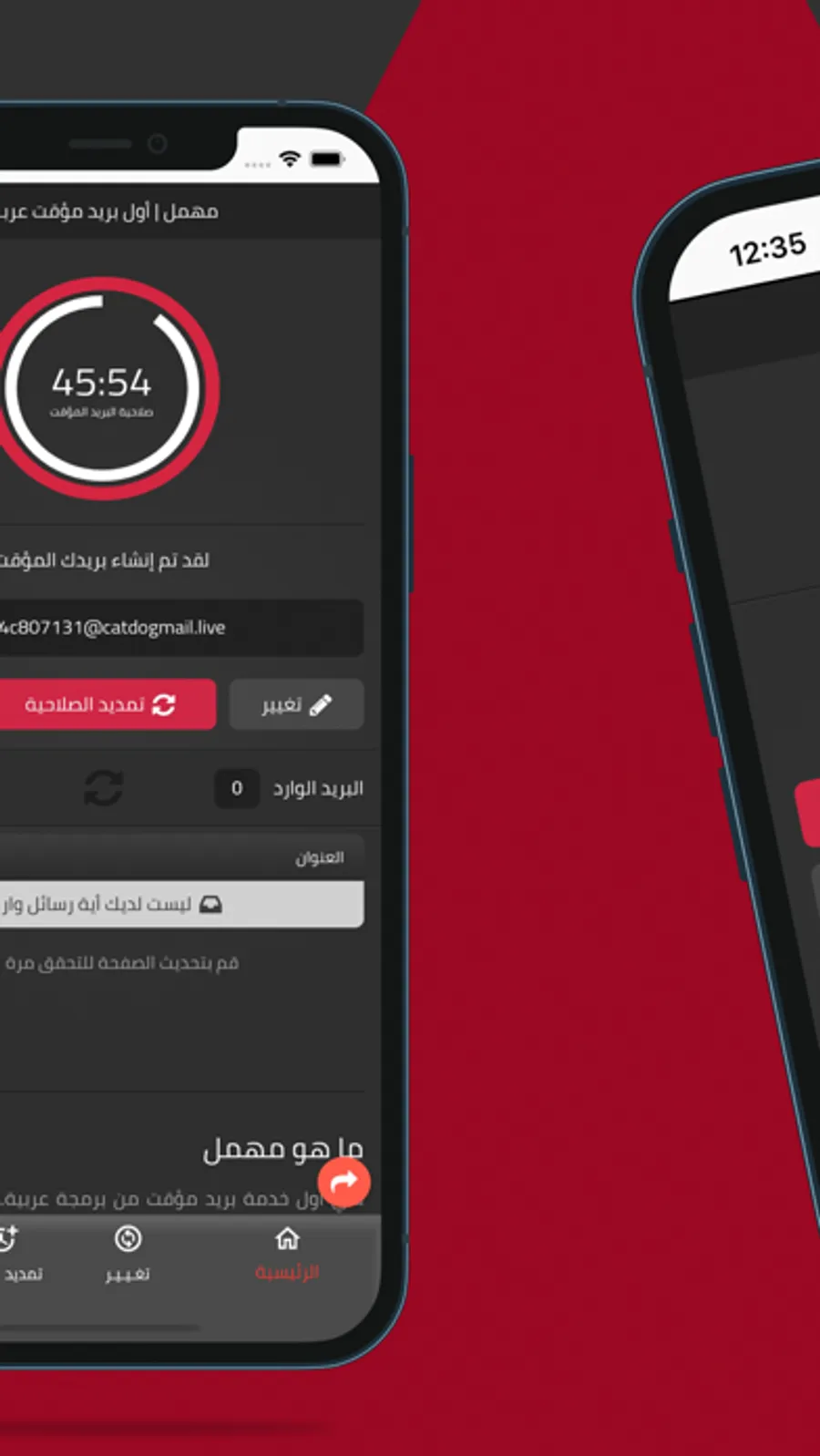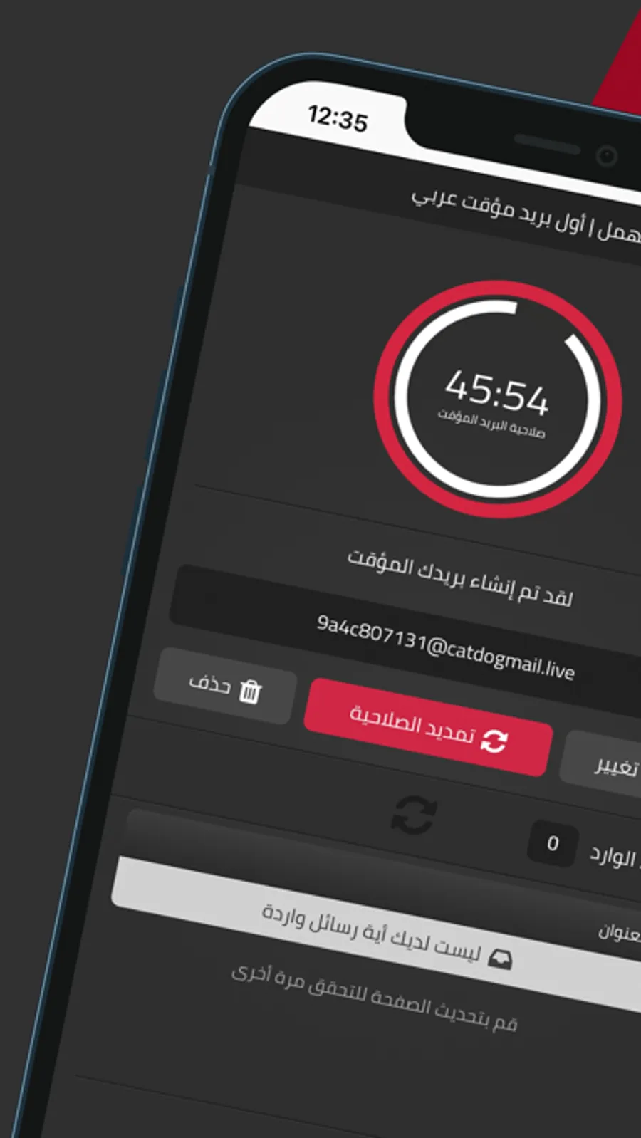 صلاحية مهمل - تنتهي صلاحية استخدام البريد بعد إنشائه بمدة وقدرها 45 دقيقة قابلة للتمديد.