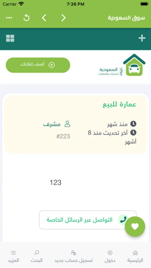 سواء كانت مستعملة او جديدة فى عديد من الاقسام مثل السيارات و العقارات و الاجهزة و غيرها من الاقسام و يستطيع الزوار الاطلاع على تلك الاقسام و المنتجات التى بداخلها و مراسلة صاحب الاعلان للوصول لذلك المنتج بعد ذلك يقوم المشترى بدفع العمولة للتطبيق من خلال احد خدمات الدفع الالكترونى المتوفرة