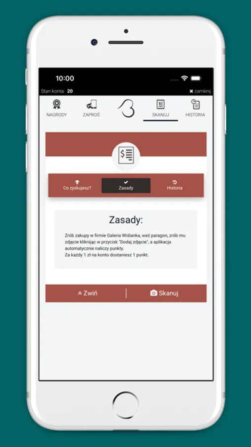 Zbieraj punkty skanując w aplikacji paragony za zakupy w Wiślance i odbieraj nagrody.