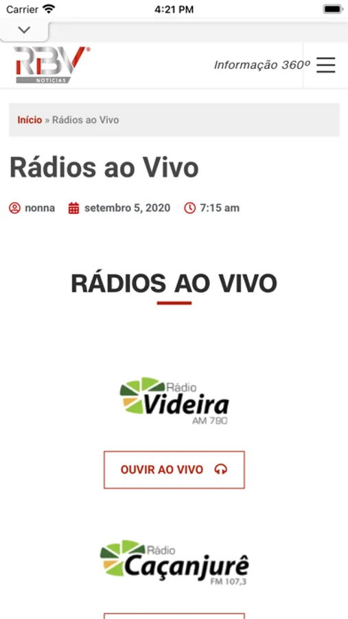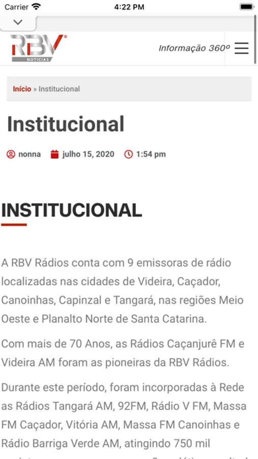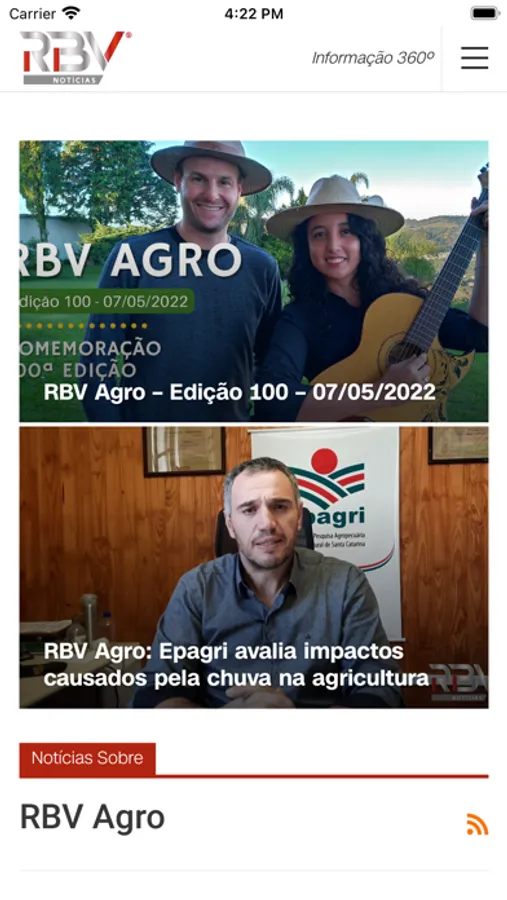O RBV Notícias é maior gerador de conteúdo jornalístico do Meio-Oeste catarinense. Um projeto multi-plataforma transmitido por cinco emissoras de rádio, chegando a 500 mil pessoas pelo dial, e para mundo todo através da internet. Com o slogan informação 360º, o jornal é transmitido em vídeo, no projeto conhecido como a rádio que virou TV para ajudar a promover o desenvolvimento da região.