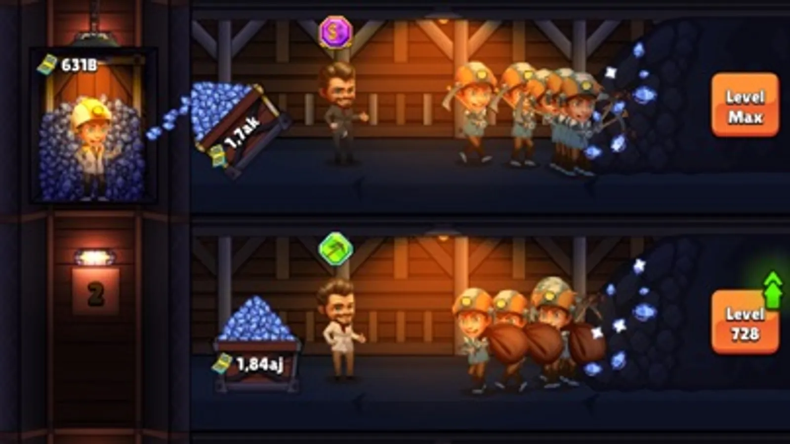Even if you are offline in this idle mining game, your miners will keep digging and you will continue to earn cash and gold!