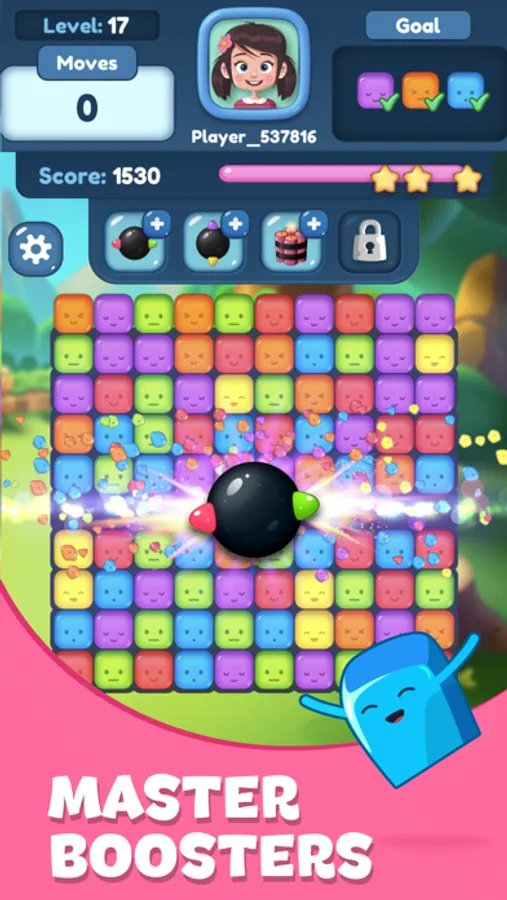 The game is challenging, it look easy at start to help you learn it but afterwards you will have to think hard and consider your tactics, we promise you that you will have the best time playing and as you progress you will enjoy it more and more, there is nothing better then solving the puzzle blocks and smashing all the cubes.