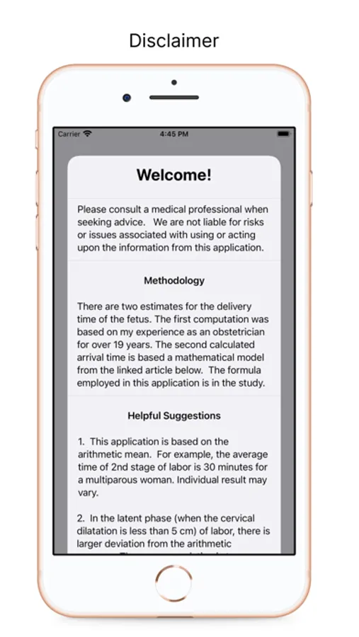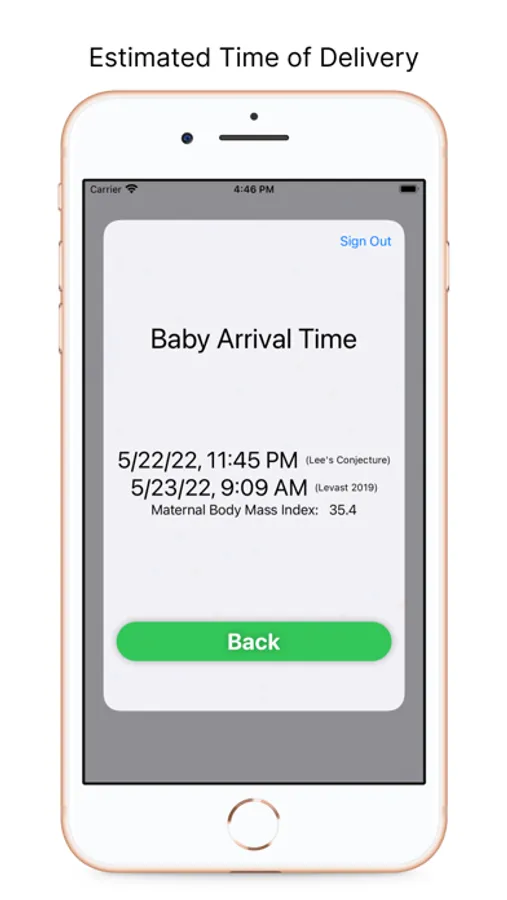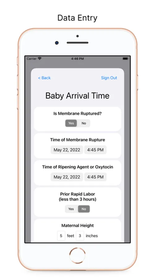 This is the first of its kind application that forecast the time of the delivery of the baby. There are two predictions. The first computation is based on a physician's experience as an obstetrician and the second one is predicated on a mathematical model. Patient's information such as time of the membrane rupture and cervical dilation is entered and the estimated times of delivery will be calculated.