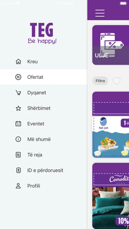 Aplikacion për anëtarët e klubit të besnikërisë TEG Be happy.