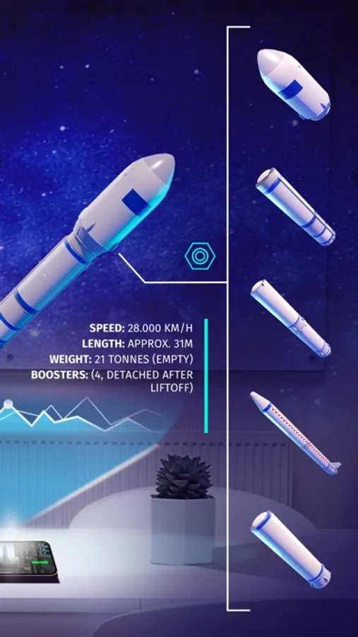 Assemble all rocket parts in the right order and discover historical info about its creation and missions.