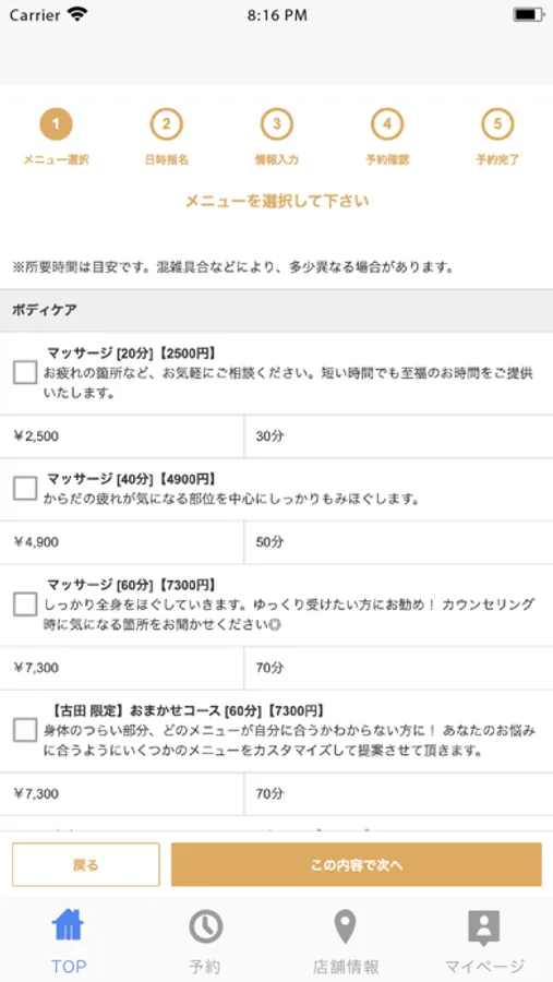 予約状況の確認やキャンセルがマイページ上から行えます。スタッフの登録が出来るので前もって担当者を登録しておけばマイページからスムーズな指名予約が可能です。