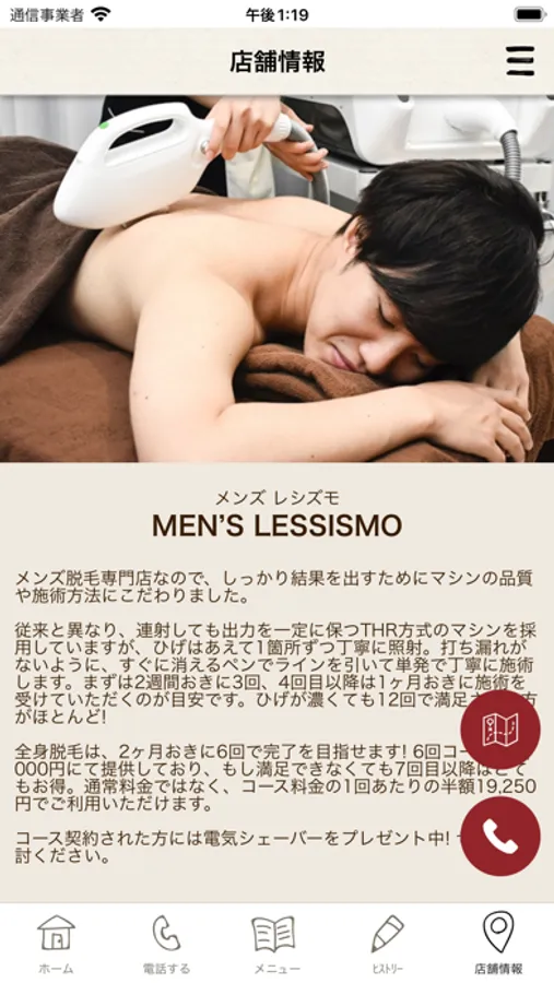 店舗のマップが表示され、地図アプリとも連携しているので、初めてのご来店の時も簡単に見つけることができます。