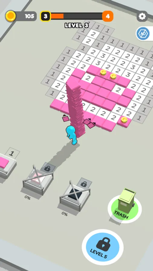 Stack colored tiles according to the numbers on the design of the floor, You can complete the wonderful artwork!