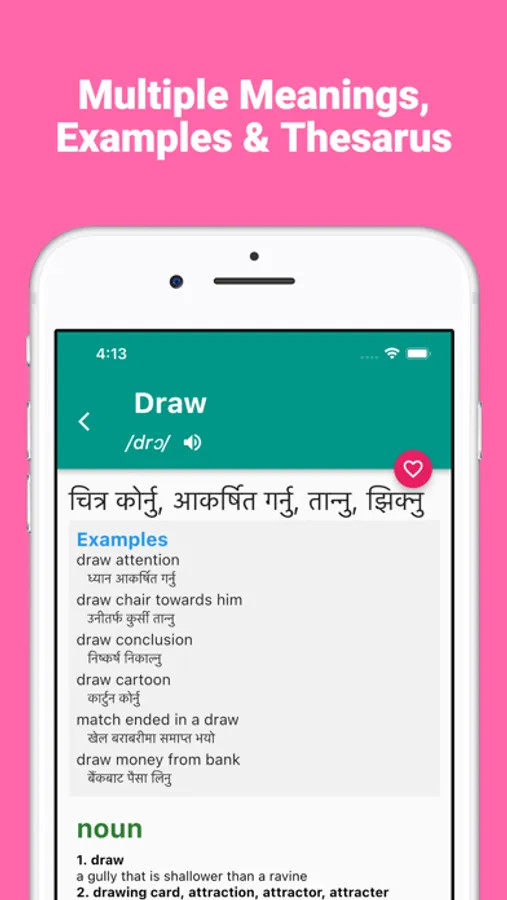 Want to know how to use certain words in sentences, then this app is right for you. You can use this English Nepali dictionary as translator to translate English words to Nepali now with the support of English sentence in near future.