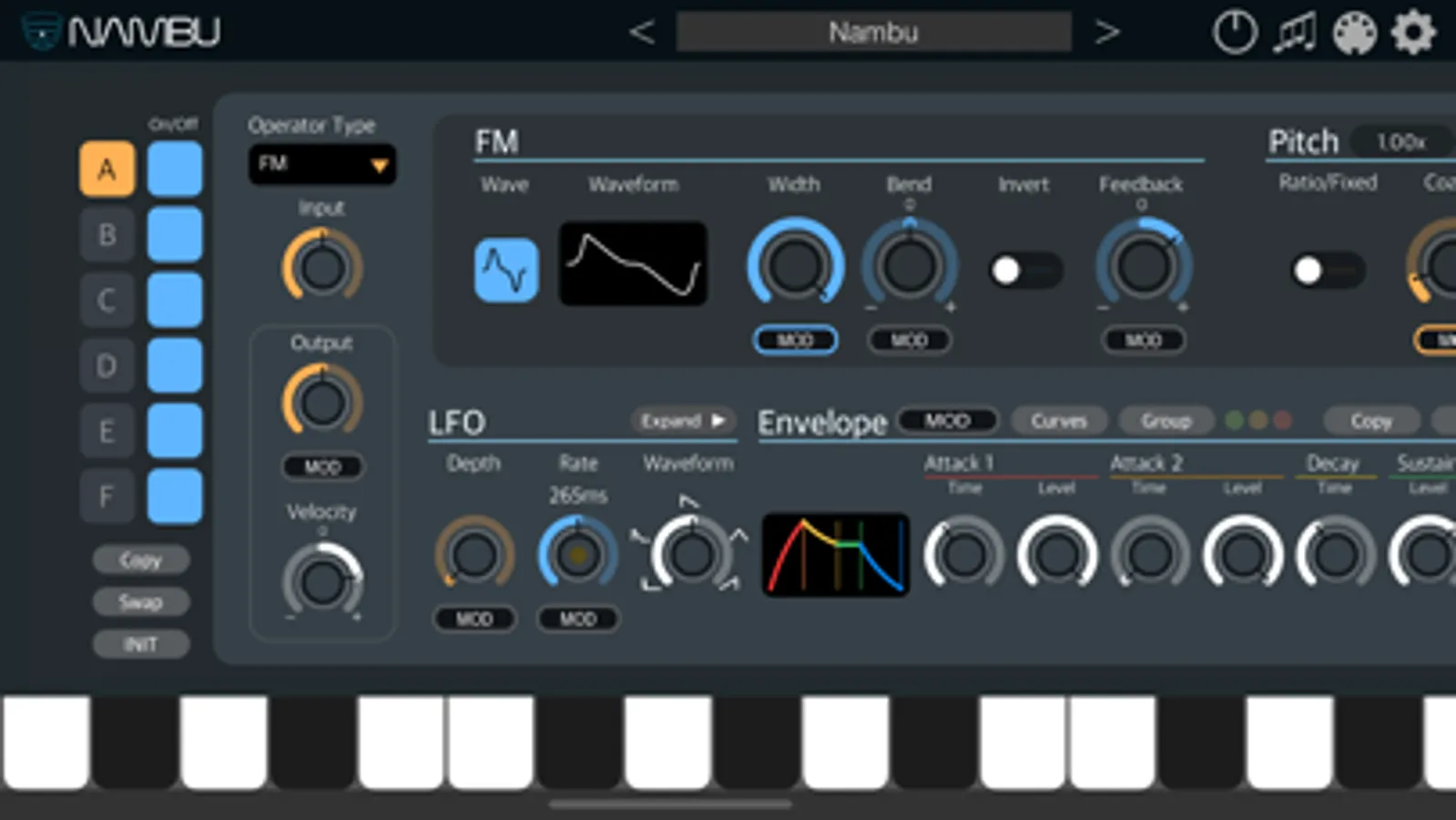 NAMBU is a 6-operator FM synthesizer that supports AUv3 plug-ins. It's a semi-modular FM synthesizer that incorporates modern ideas, not designed to recreate the sound and workflow of a vintage FM synthesizer.