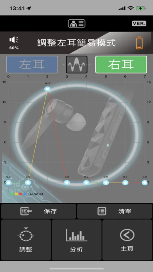 左右 各48段 頻率增益調整、分析。