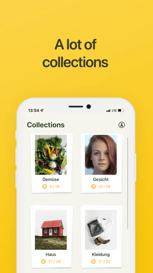 In the application you will find more than 200 illustrated cards and many thematic collections with which you will remember words very easily and in addition you will train your visual memory.