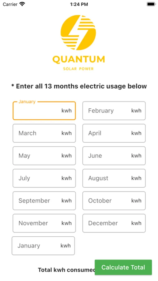 The Quantum Solar Power app was designed for internal sales development in the Puerto Rican market. The basic functions of the application is to compute electric usage for homeowners and be able to calculate solar system sizes based off of the calculations.