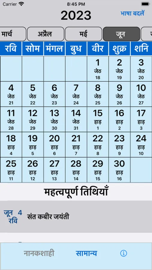 5. Easy to change the calendar language into either English or Punjabi or Hindi Language.