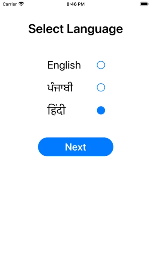 As the user installs and runs the app first time, he is prompted to choose the language from English or Punjabi or Hindi. After tapping next button, user navigates to the main calendar page displayed in chosen language. The calendar displays the current month and current date (highlighted in pink colour). The important dates list can be scrolled up/down to view all dates. User can change the mode of calendar into Nanakshahi or General by tapping the buttons provided at bottom of the screen. User can also view the calendar and important dates of any month by using the horizontally scrolling 'Months menu' at the top of calendar. User can change the calendar language at any time by tapping 'Select Language' button and selecting desired language i.e. English, Punjabi or Hindi.
